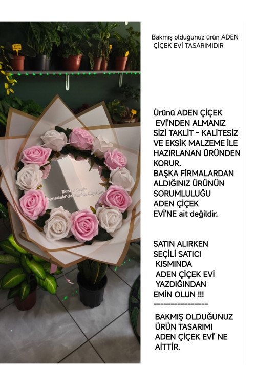 - 20cm çapında ayna, aynanızın görünümünü süslemek için ideal bir aksesuardır.; - 12 adet kadife gül buketi, göz alıcı bir görünüm sunar ve mekanınıza romantik bir dokunuş katar.; - Pembe ve beyaz renk kombinasyonu, zarif ve şık bir estetik yaratır.; - Türk menşeli bu ürün, yerel üreticilerin kalitesini ve el emeğini yansıtır.; - Aden Çiçek Evi tarafından üretilen bu ürün, güvenilir ve kaliteli bir markanın garantisi altındadır.; - Birincil ithalatçı Aden Çiçek Evi, ürünlerin orijinalliğini ve kalitesini koruma konusunda özen gösterir.