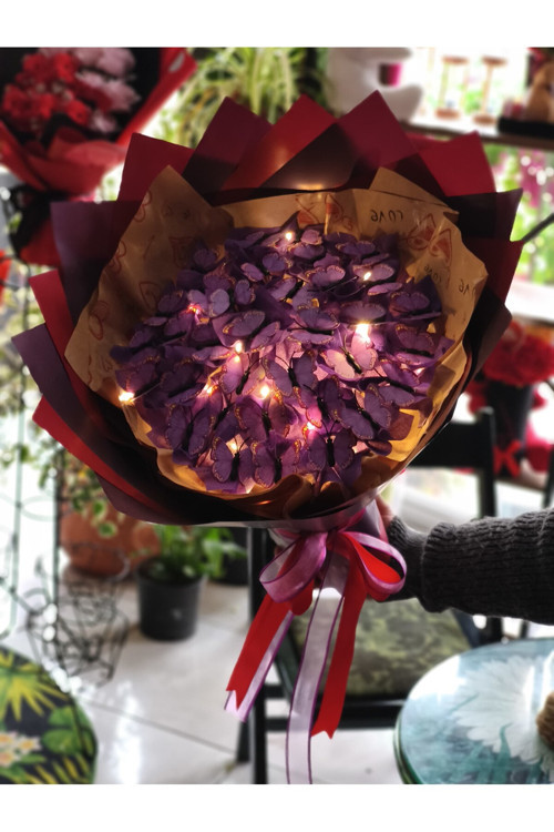 Aden Çiçek Evi Sevdiklerinize Özel Hediyelik Işıklı (Pvc) Kelebek Buketi