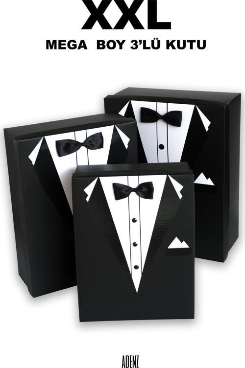 Adenz Damat Bohçası Çeyiz Kutusu 3 'Lü Set - Gerçek Papyon Ve Düğme