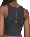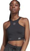 adidas by Stella McCartney TruePace Running kısa üst ile koşarken her güneş ışınından sonuna kadar faydalan, İddialı renkleri, ikonik baskı çizgileri ve dar kesimi ile stilini ve vücut hatlarını öne çıkarır,