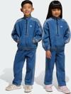 Çocuklara özel bu adidas denim eşofman takımı, yalın stilin mükemmel bir örneği. Bol kesimi ve rahat görünümü ile günlük maceralar için idealdir. Yumuşak ve dayanıklı denim kumaş, çocukların gün boyu konforlu kalmasını sağlar. adidas Trefoil ve kollardaki 3 bant gibi imza detaylar, modele ikonik bir dokunuş ekler.""