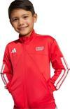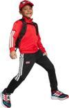 Adidas'ın çocuklar için tasarladığı bu kırmızı eşofman takımı, küçüklerin rahatlığı ve hareket özgürlüğü düşünülerek üretilmiştir.