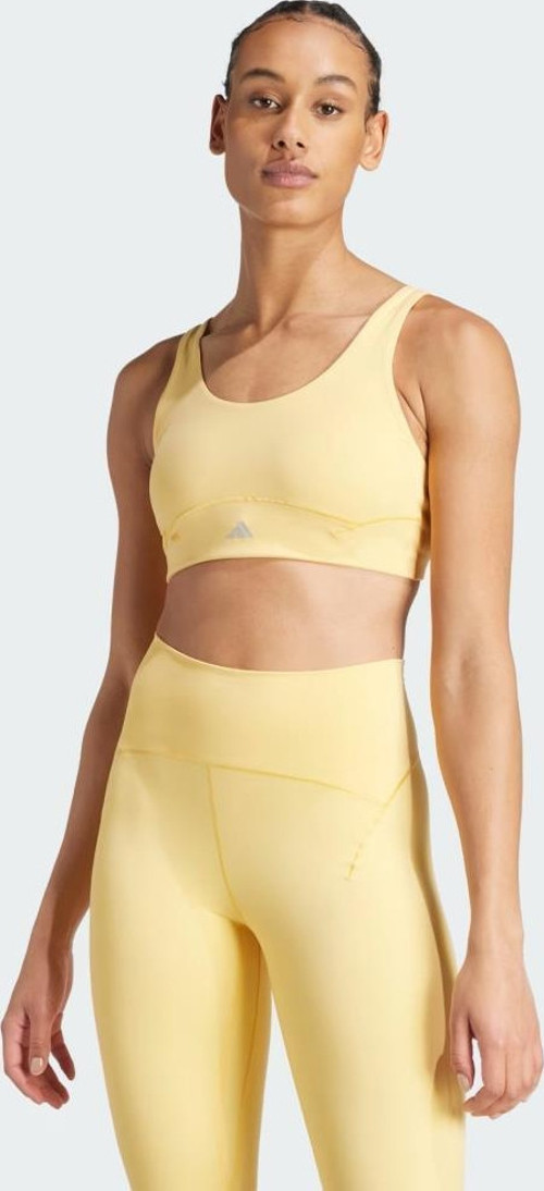 From Crow pose to Cobbler's pose, this adidas medium-support bra keeps you comfortable as you move. Moisture-managing AEROREADY keeps you dry, while mesh inserts enhance ventilation. Pads provide coverage and removable comfort for customisable support. This product is made with at least 70% recycled materials. By reusing materials that have already been created, we help to reduce waste and our reliance on finite resources and reduce the footprint of the products we make.