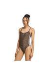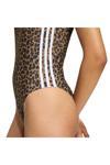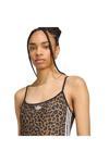Cesur leopar baskılı bu adidas mayo, yazın en ateşli partilerine hazırdır. Yuvarlak yaka ve sırt tasarımı vücuda oturan bir siluet kazandırır. Festivalde dans ederken veya havuz kenarında uzanırken konforlu tutan yumuşak örgü kumaştan üretilmiştir ve tam astarlıdır.