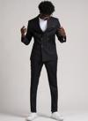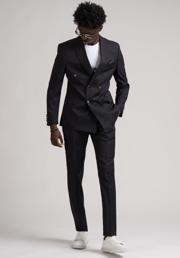 Adimo Slimfit Sivri Yaka Çift Yırtmaçlı İnce Çizgili Kruvaze Takım Elbise