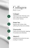 Kolajen, yeşil çay, papatya ve E vitamini ile zenginleştirilmiş bu vücut kremi, cilt elastikiyetini artırmaya ve doğal kolajen üretimini desteklemeye yardımcı olur. Cildi derinlemesine nemlendirirken pürüzsüz ve daha sıkı bir görünüm kazandırır. Zengin ve kadifemsi dokusu hızla emilerek cildi yumuşak ve canlı bir görünüme kavuşturur. Düzenli kullanımda cilt daha sıkı, nemli ve pürüzsüz bir his kazanır.