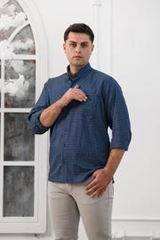 Erkek Lacivert Microcotton Baskılı Slim Fit Gömlek - Image 1