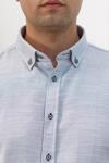 Erkek Mavi Keten Ekoseli Düğmeli Yaka Regular Fit Gömlek - Image 1