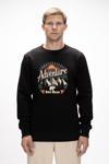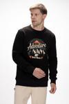 Adventure Si̇yah Crewneck Erkek Baskılı Sweatshirt
