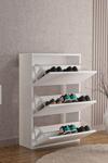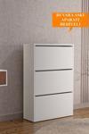 Aeka Ae-1078 Vizyon Ayakkabılık Duvara Monte Edilebilir, Beyaz Düşer Kapak, 3 Kapaklı, 6 Raflı, 110 Cm
