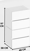 - Yüksekliği 97 cm olan bu şifonyer, modern stilini korurken mekanınızda rahatça yer bulur.