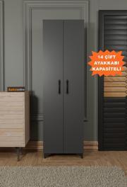 AE-3085 SELEN ANTRASİT AYAKKABILIK, 7 RAFLI, AYAKLI, 2 KAPAKLI ÇOK AMAÇLI DOLAP, KİLER DOLABI Antrasit 7 raflı, antrasit ayaklı ayakkabılık, hem şıklığı hem de işlevselliği ile dikkat çekiyor. Modern tasarımı ile evinizin her köşesine uyum sağlayacak şekilde tasarlanan bu ayakkabılık, ayakkabılarınızı düzenli ve kolay erişilebilir bir şekilde saklamanıza olanak tanır. Ürünün ölçüleri yüksekliği 188 cm, genişliği 49 cm ve derinliği 32 cm'dir. Her rafın yüksekliği 23 cm olup, ayak yüksekliği ise 8 cm'dir. Bu geniş ve kullanışlı raflar, ayakkabılarınızı kategorize ederek daha düzenli bir şekilde saklamanızı sağlar. Hem spor ayakkabılarınızı hem de günlük ve özel gün ayakkabılarını rahatlıkla yerleştirebilirsiniz. Dayanıklı malzemelerden üretilmiş olan AE-3085 SELEN, uzun ömürlü bir kullanım sunar. Antrasit rengi, her türlü dekorasyona kolaylıkla uyum sağlayarak, evinizin estetik görünümünü tamamlar. Ayrıca, kapaklı tasarımı sayesinde ayakkabılarınızın tozlanmasını önler ve dağınıklığı gizler. Bu şık ve fonksiyonel ayakkabılık, sadece bir depolama çözümü değil, aynı zamanda evinizin dekorasyonuna katkı sağlayan zarif bir mobilyadır. Kolay montaj özelliği ile kısa sürede kurulabilir ve hemen kullanıma hazır hale gelir. AE-3085 SELEN ayakkabılık, geniş depolama kapasitesi ile ayakkabı koleksiyonunuzu düzenli ve temiz tutmak için mükemmel bir seçimdir.