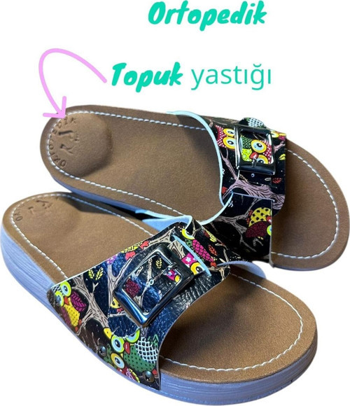 Baykuş desenli tasarımı ile dikkat çeken bu terlik, siyah rengiyle her kıyafetle uyum sağlar.