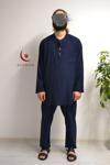 Afgan stili, pamuklu ketenkumaştan üretilmiş bu erkek takım; uzun gömlek boyu, bol kesimli pantolonu verahat kalıbıyla hem ibadetlerde hem günlük hayatta konfor sunar.