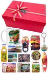 Lüks Fiyonklu bir Hediye Kutusu ile birlikte 8 Adet Ülke Magneti Şişe Kapak Açacak, 1 Adet Anahtarlık Şişe Kapak Açacak ve 1 adet Kupa Bardaktan oluşan toplam 10 adet seyahat hatıra paketi. Dolu dolu Hediyenizi Lüks Hediye Kutusunda Sevdiklerinize sunabilirsiniz.