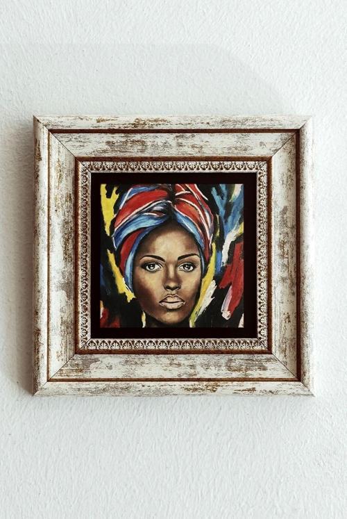 CVC WOOD Afrikalı Kadın Çerçeveli Taş Tablo , Çerçeveli Taş Duvar Dekoru