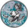Mitolojiye göre Kıbrıs açıklarındaki denizin köpüklerinden doğmuştur. Ve böylece o, madeni para üzerinde, bozulmamış ve mükemmel suların ortasında tüm güçlü güzelliğiyle ortaya çıkarken, her tarafta çiçek açarken, yeniden doğarken ve hayatın temeli olan sevginin karşı konulmaz gücünü yansıtırken tasvir edilmiştir. Kendimizi, kırılganlığımızı, yakınlığımızı keşfetmemizi isteyen ve bizi özellikle kendimizi sevmeye davet eden modern bir tanrı.