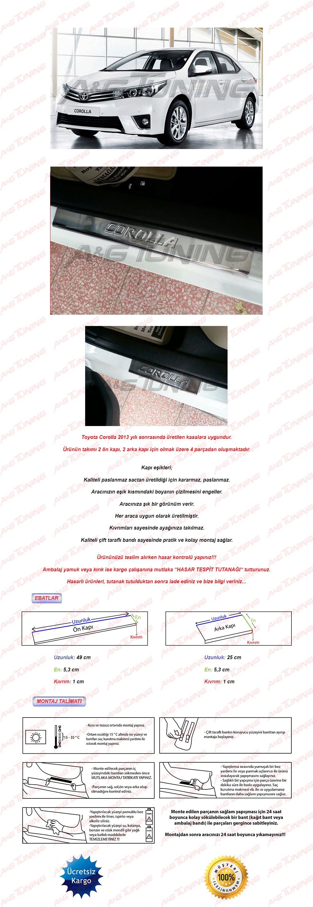 A&G Tuning AG Toyota Corolla Krom Kapı Eşiği Tk 2013 Üzeri Paslanmaz Çelik