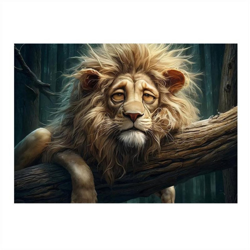 Ağaçta Dinlenen Aslan Mdf Tablo 50cmX 70cm