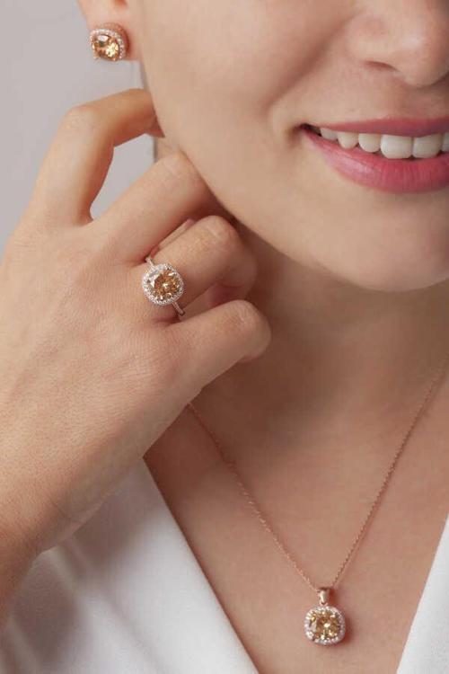 AgaKulche Baget Taşlı Gümüş Takı Seti Rose S30RB 925