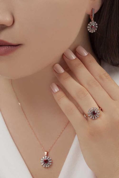 Söğütlü Silver Gümüş elmas möntürlü üçlü set