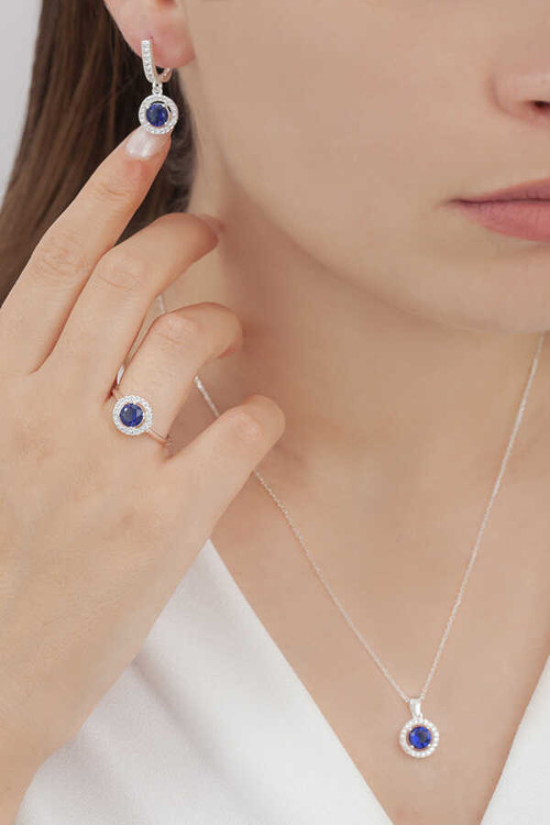 AgaKulche Tek Taş Gümüş Takı Seti S66KL 925