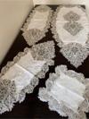 5 Parça Lüx Salon Takımı Masa Örtüsü : 60x160 cm Büyük Sehpa Örtüsü : 45x100 cm Küçük Sehpa Örtüsü : 1 Adet - 40x80 cm Sehpa Örtüsü 2 Adet: 40x40 cm Kumaş Türü : KADİFE ÖZELLİKLERİ : Kenarları Fransız Güpürlüdür YIKAMA TALİMATI -Makinada veya elde yıkayabilirsiniz max 40 derecede yıkayınız. - Çamaşır suyu ile leke sökücü kimyasallar kullanmayınız. -Yıkama esnasında koyu renkleri mümkün olduğunca ayrı tutunuz. -Ilık ütü ile ütüleyiniz. -Islak bekletmeyiniz. -Kurutma makinasında kurutulabilir