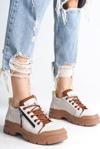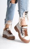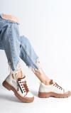 AGATHA Bağcıklı Fermuarlı Ortopedik Taban Kadın Sneaker Spor Ayakkabı  CTT - Krem
