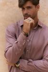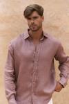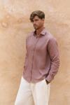 Agnola Oversize Erkek Açık Bordo Keten Gömlek