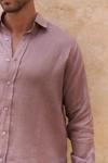 Oversize kesim, klasik yaka keten karışımlı erkek gömlek.Çift düğmeli manşetli uzun kol. Ön düğme kapamalı.