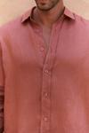 Oversize kesim, klasik yaka keten karışımlı erkek gömlek.Çift düğmeli manşetli uzun kol. Ön düğme kapamalı.