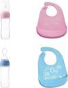 Agubugu Baby - Kaşıklı Mama Biberonu - Mavi + Silikon Bebek Mama Önlüğü - Mavi