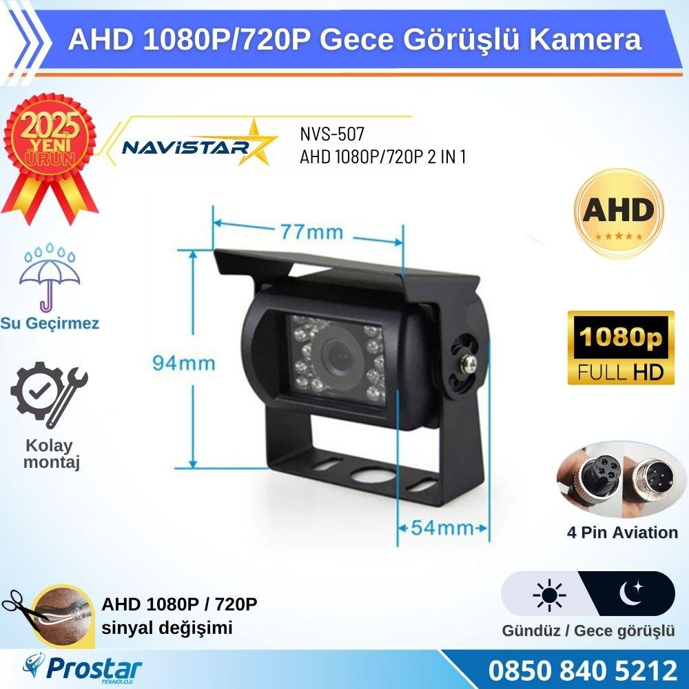 Navistar NVS-507, ağır vasıta ve ticari araçlar için özel olarak tasarlanmış profesyonel arka görüş kamera sistemidir. AHD teknolojisi ile yüksek kaliteli görüntü aktarımı sağlayan bu kompakt çözüm, zorlu saha koşullarında güvenilir performans sunar.