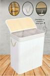 Bambu Katlanabilir İki Bölmeli Kirli Çamaşır Sepeti