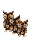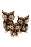 Ahşap Aborjin Üçlü Baykuş Dekoratif Biblo No.1 17 cm