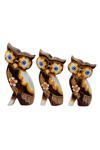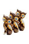 Ahşap Aborjin Üçlü Baykuş Dekoratif Biblo No.2 20 cm