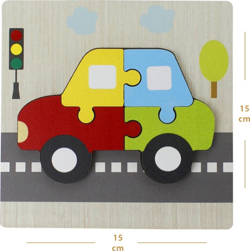 Doğan Oyuncak Dünyası Ahşap Araba Puzzle - Bebekleri İçin Puzzle - Ahşap Yapboz Oyuncak - Oyuncak Yap-boz - 4 Parça Puzzle