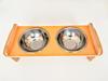 Ahşap Ayaklı İkili Kedi-Köpek Mama ve Su Kabı.Turuncu.35*15*8 cm.