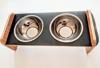Ahşap Ayaklı İkili Kedi-Köpek Mama ve Su Kabı.Siyah.35*15*8 cm