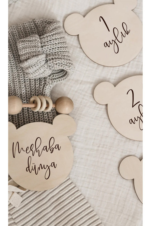 Ahşap Ayıcık Şekilli Aylık Bebek Fotoğraf Çekim Kartları – 1-12 Ay