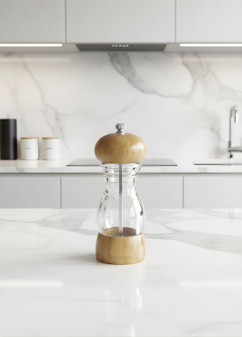 Sunumun lezzet kadar önemli olduğu sofralar için tasarlandı. 16 cm boyundaki bu özel değirmen, modern şeffaflığıyla içeriği sergilerken, doğal ahşap başlığıyla mutfağınıza rustik bir ruh katar.