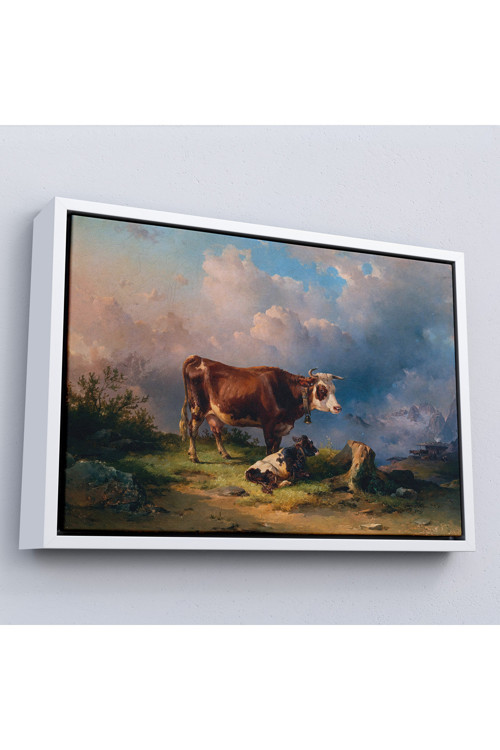 Ahşap çerçeveli Alp Dağlarında Inek Ve Danası Tablo-7044