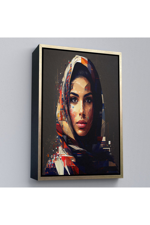Ahşap çerçeveli efektli Arap kadın portresi tablo-7837