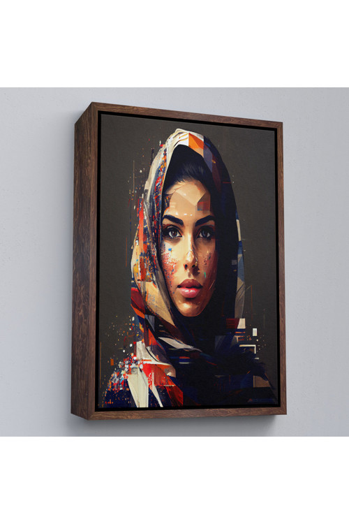 Ahşap çerçeveli efektli Arap kadın portresi tablo-7837