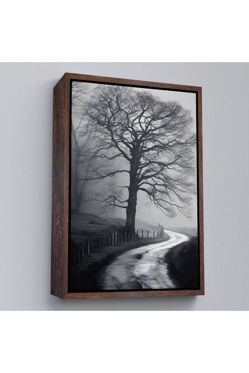 Ahşap Çerçeveli Karanlıktaki Gizemli Ağaç Tablosu-7522