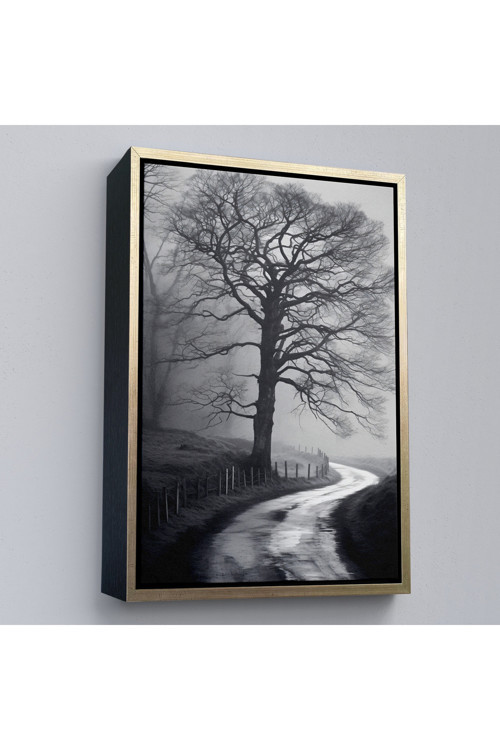Ahşap Çerçeveli Karanlıktaki Gizemli Ağaç Tablosu-7522