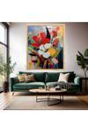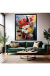 Artarilion Ahşap Çerçeveli MDF Duvar Tablosu Soyut Çiçekler Yağlı Boya Görünümlü Dijital Baskı Salon Tablosu