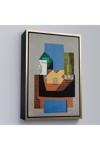 Ahşap çerçeveli Pablo Picasso - Gitar, şişe Ve Meyve Kase Tablosu-7317