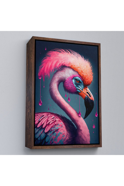 Ahşap Çerçeveli Pembe Hippi Filamingo Tablo-7869