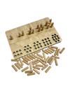 - Çocuklar deliklere ahşap çubukları yerleştirerek hem sayma pratiği yapar hem de sayı ile miktar arasındaki ilişkiyi kavrar.
